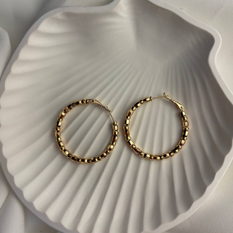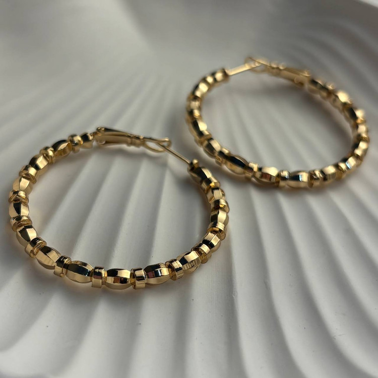 این گوشوارهی حلقهای جذاب با طراحی مهرهای براق و تراشخورده، یکی از مدلهای خاص و چشمنواز ژوپینگ است. ترکیب مهرههای منظم با درخشش شامپاینی، جلوهای لوکس و متفاوت ایجاد کرده و آن را برای استفاده روزمره و حتی استایلهای رسمی، به انتخابی ایدهآل تبدیل کرده است.