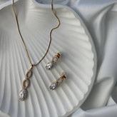 نیمست ژوپینگ زنانه با طراحی ظریف و شیک، گزینهای ایدهآل برای بانوانی است که به دنبال زیورآلاتی باکیفیت و درخشان هستند. این نیمست شامل گردنبند و گوشواره بوده و با نگینهای مخراجکاری شده تزئین شده که جلوهای لوکس و ماندگار به آن میبخشد.